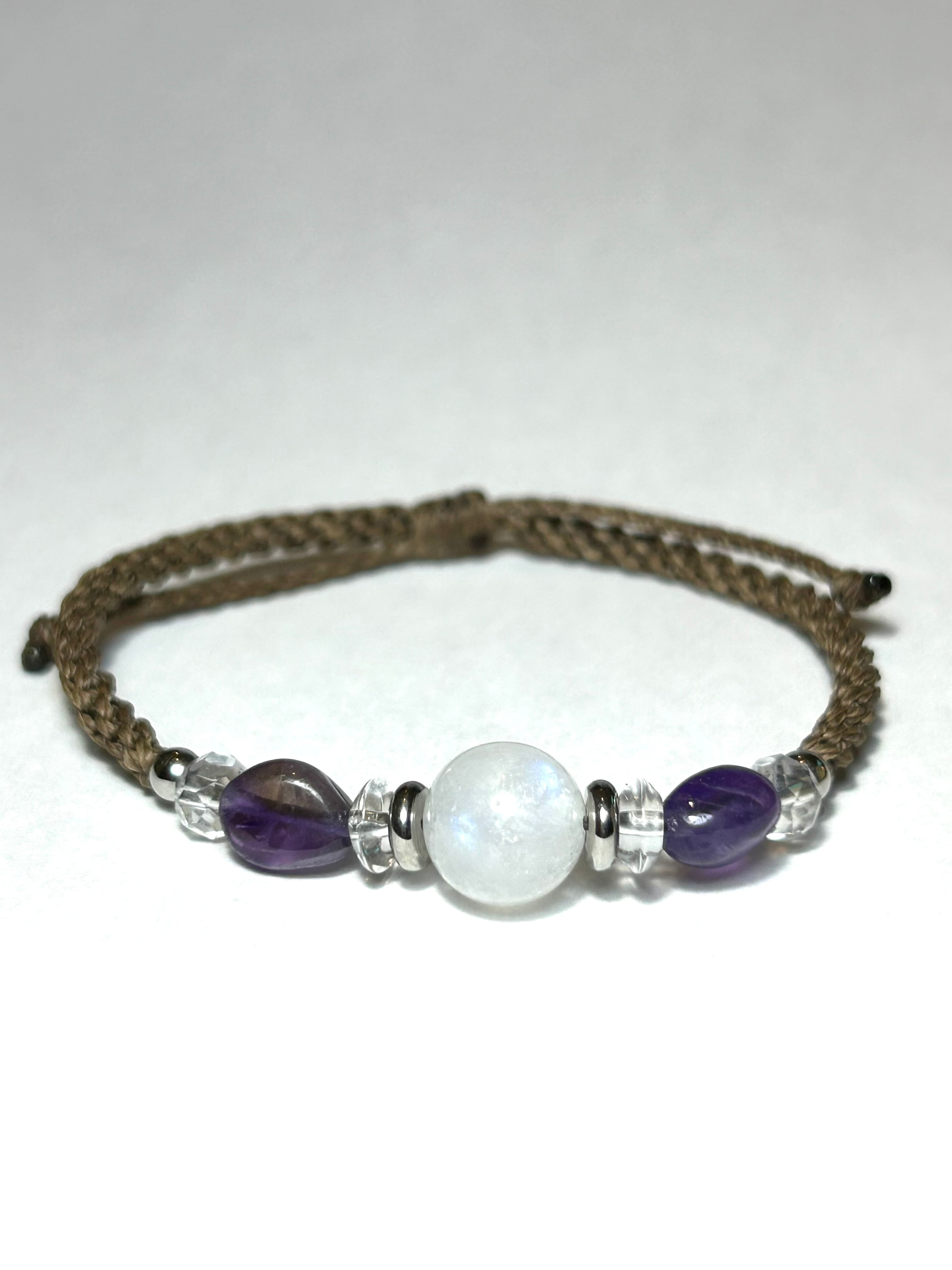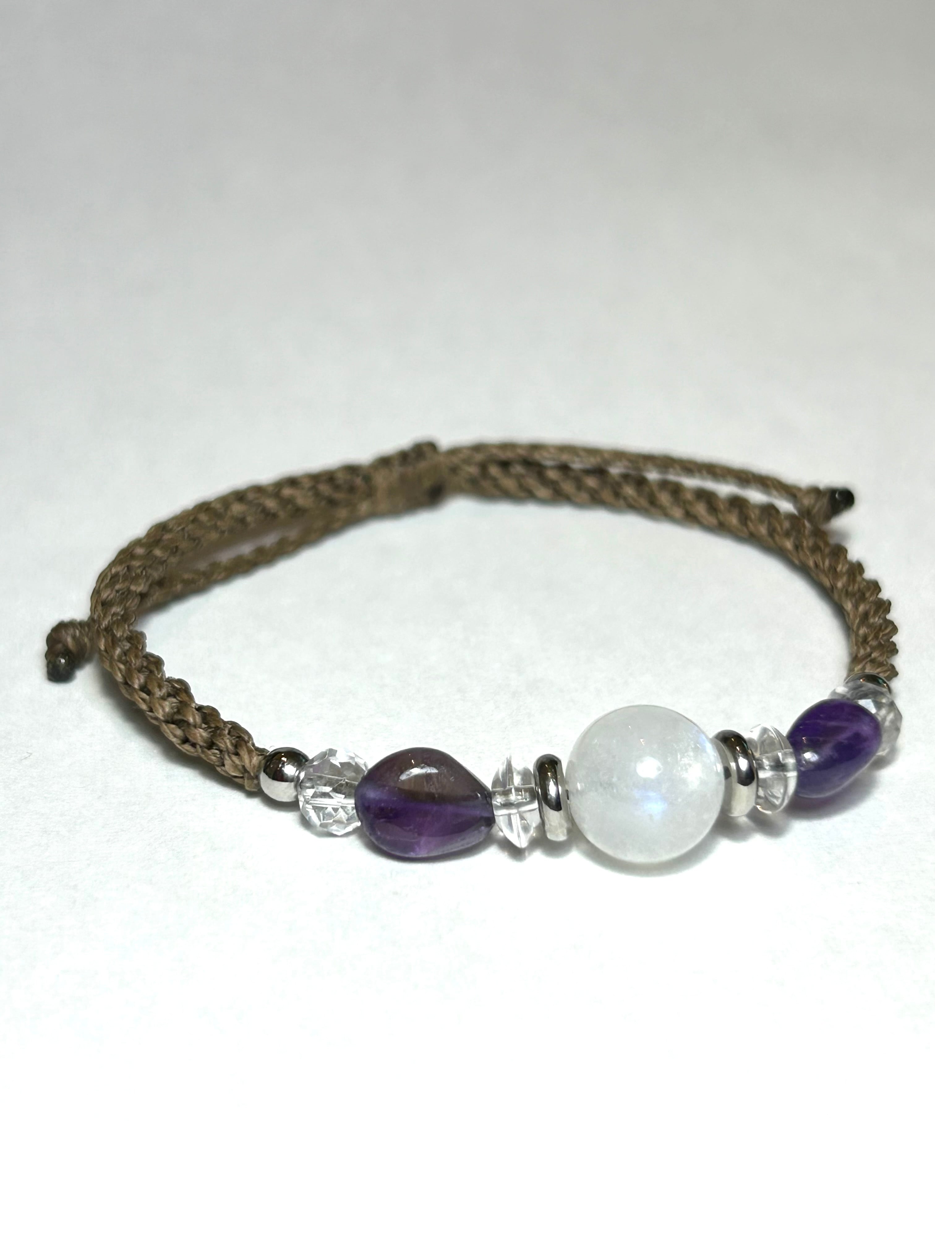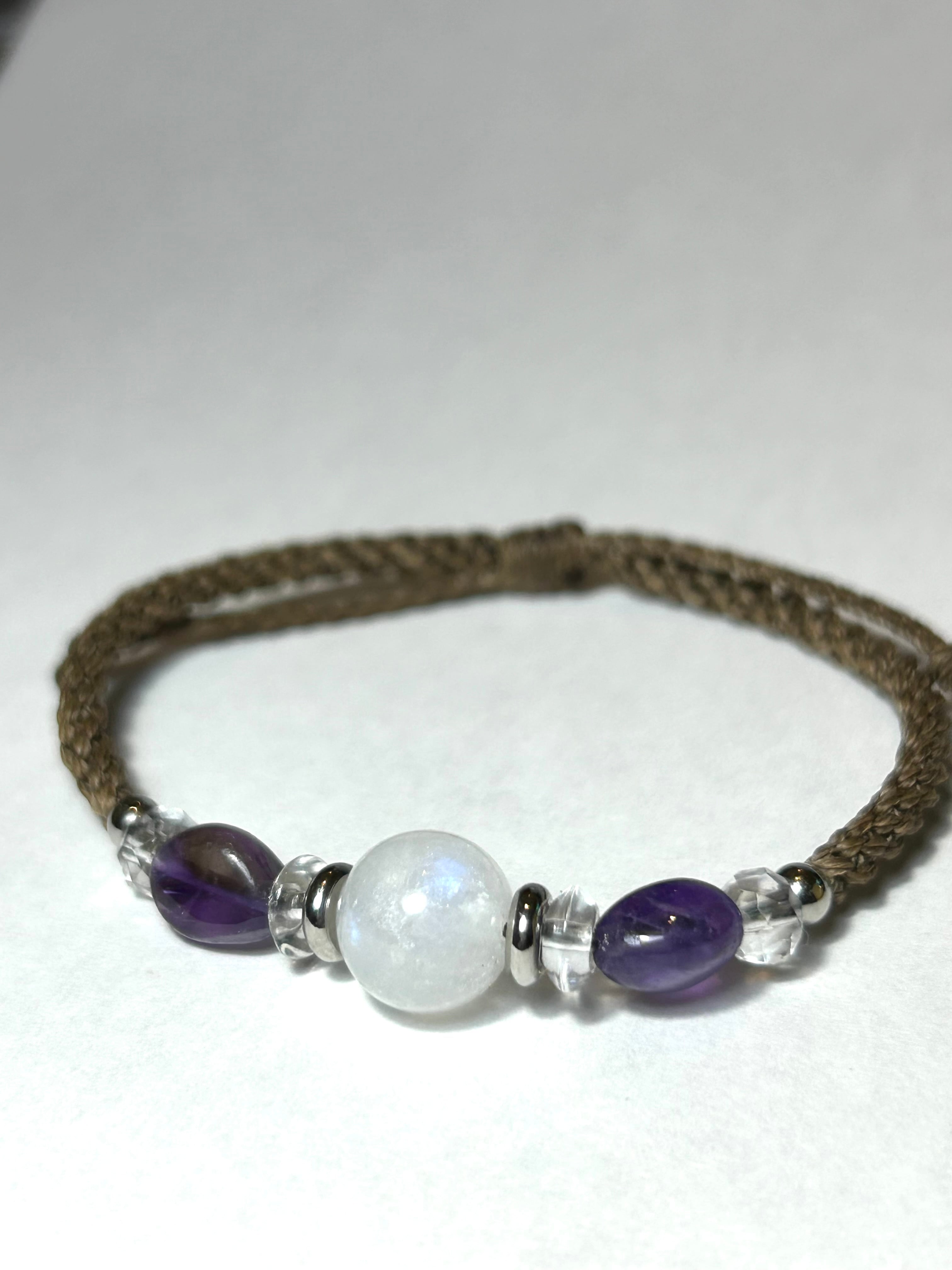 石の種類: ムーンストーン(10mm玉)、アメジスト、水晶、