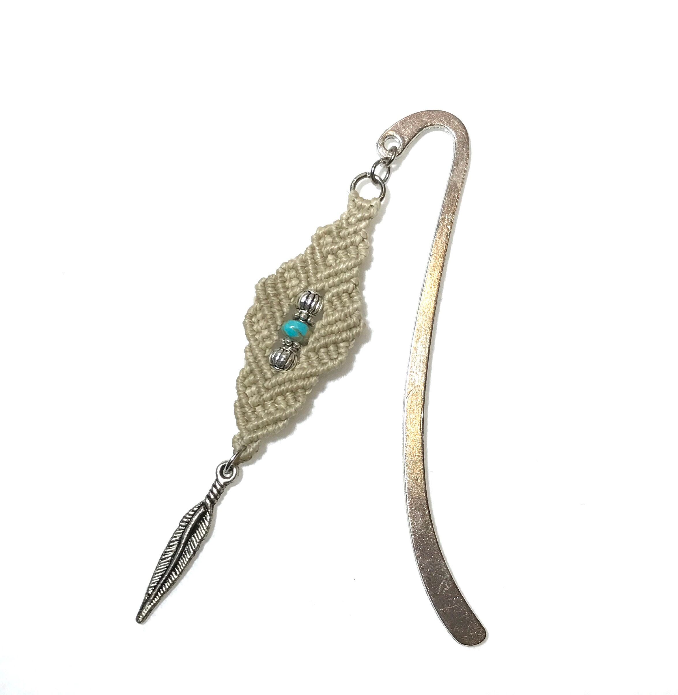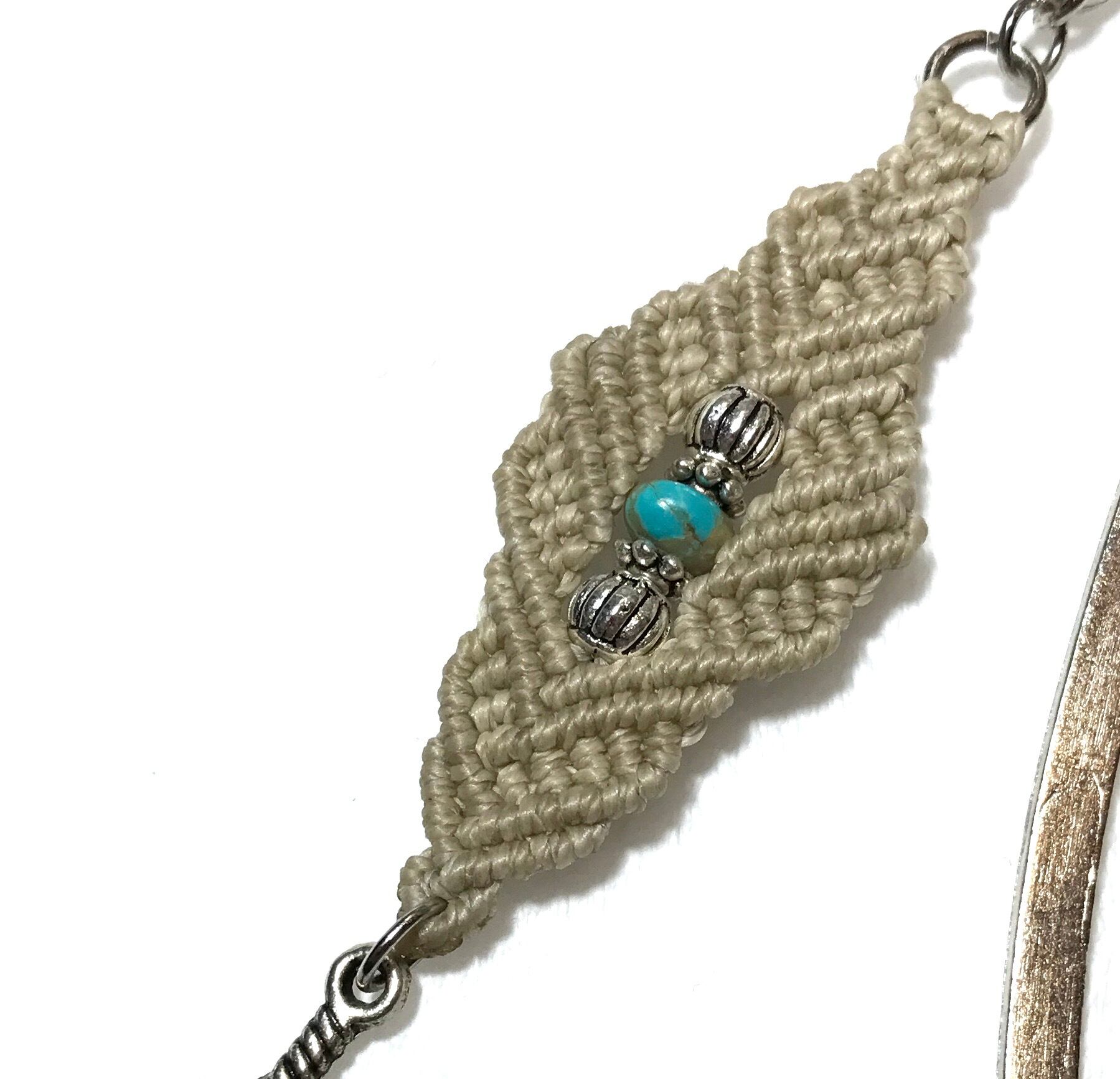 天然のターコイズ、シルバービーズを使用したマクラメブックマーク▶︎